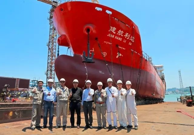 廈門船舶重工股份有限公司為廈門建發航運有限公司批量建造的5390DWT雙相不銹鋼油化一體船中的首制船(建造代碼415A)在企業一號船臺順利下水。船東、CCS船檢、廈船相關領導、人員代表出席并觀摩了下水儀式。